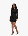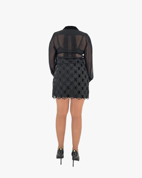 A timeless black mini dress that blends elegance with quiet confidence. The sheer sleeves and delicate lace skirt create a refined contrast, making it perfect for evenings where simplicity speaks louder than excess. Effortlessly chic, just the way CALIDAD loves it.