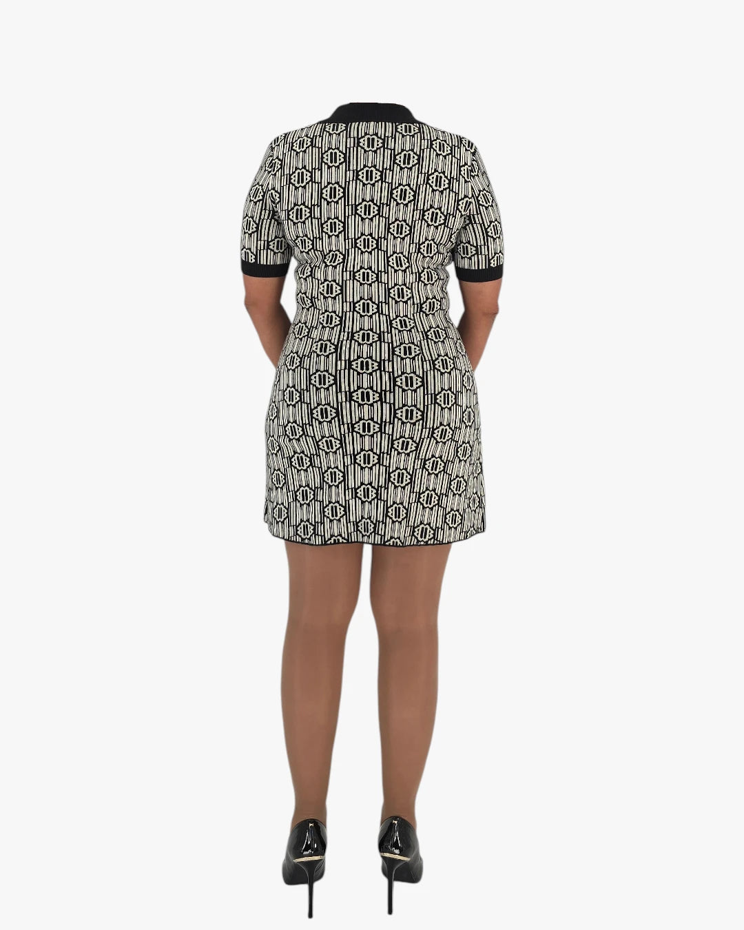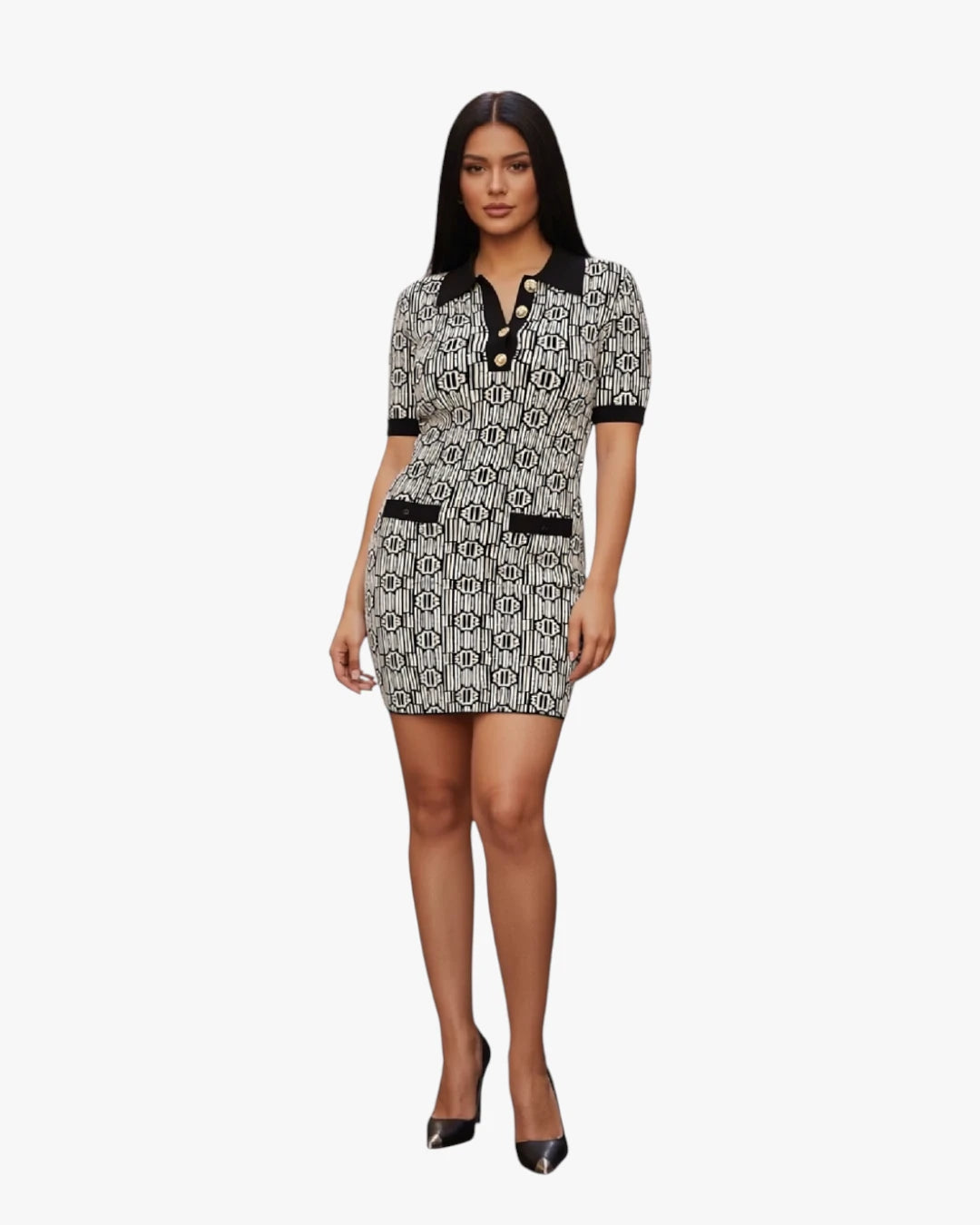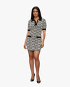 A bold yet refined mini dress that plays with contrast and structure. The graphic pattern and tailored cut create a confident, modern lookÑperfect for days when you want your outfit to make the statement for you.