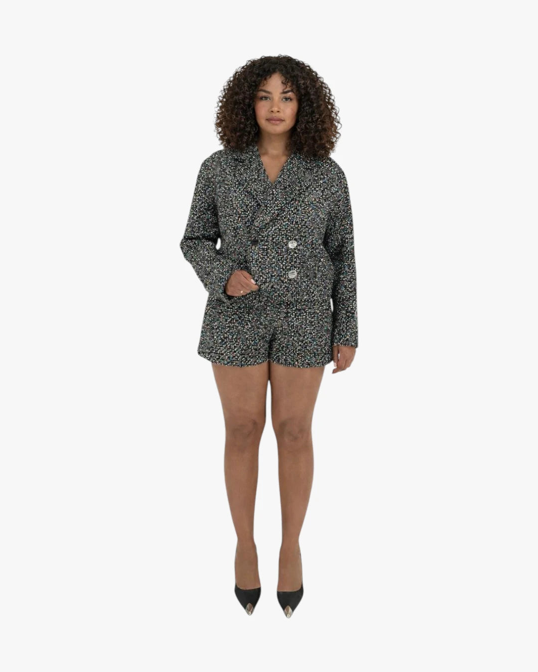 This is the kind of set you imagine wearing when you want to feel grounded and powerful at the same time. CALIDAD appreciated how the darker tweed creates depth and presence, almost wrapping you in confidence. ItÕs a look that feels reassuringÑstructured enough to lead, soft enough to stay approachable.