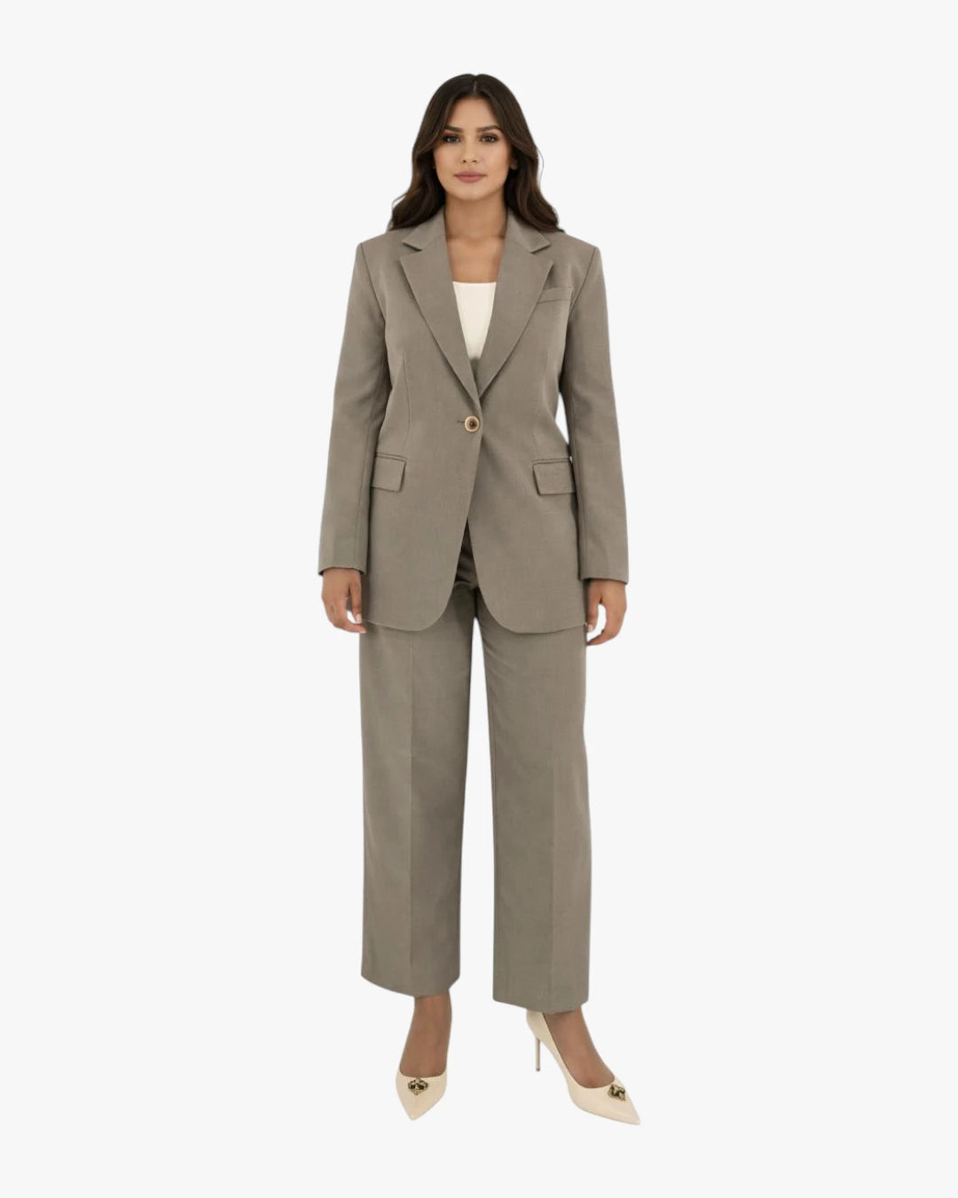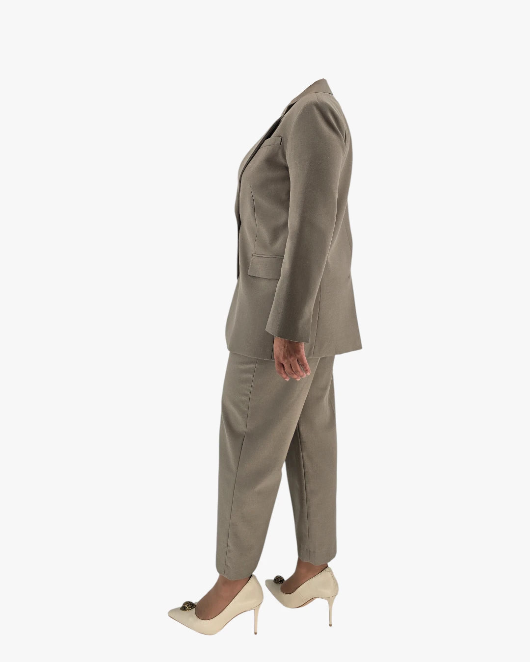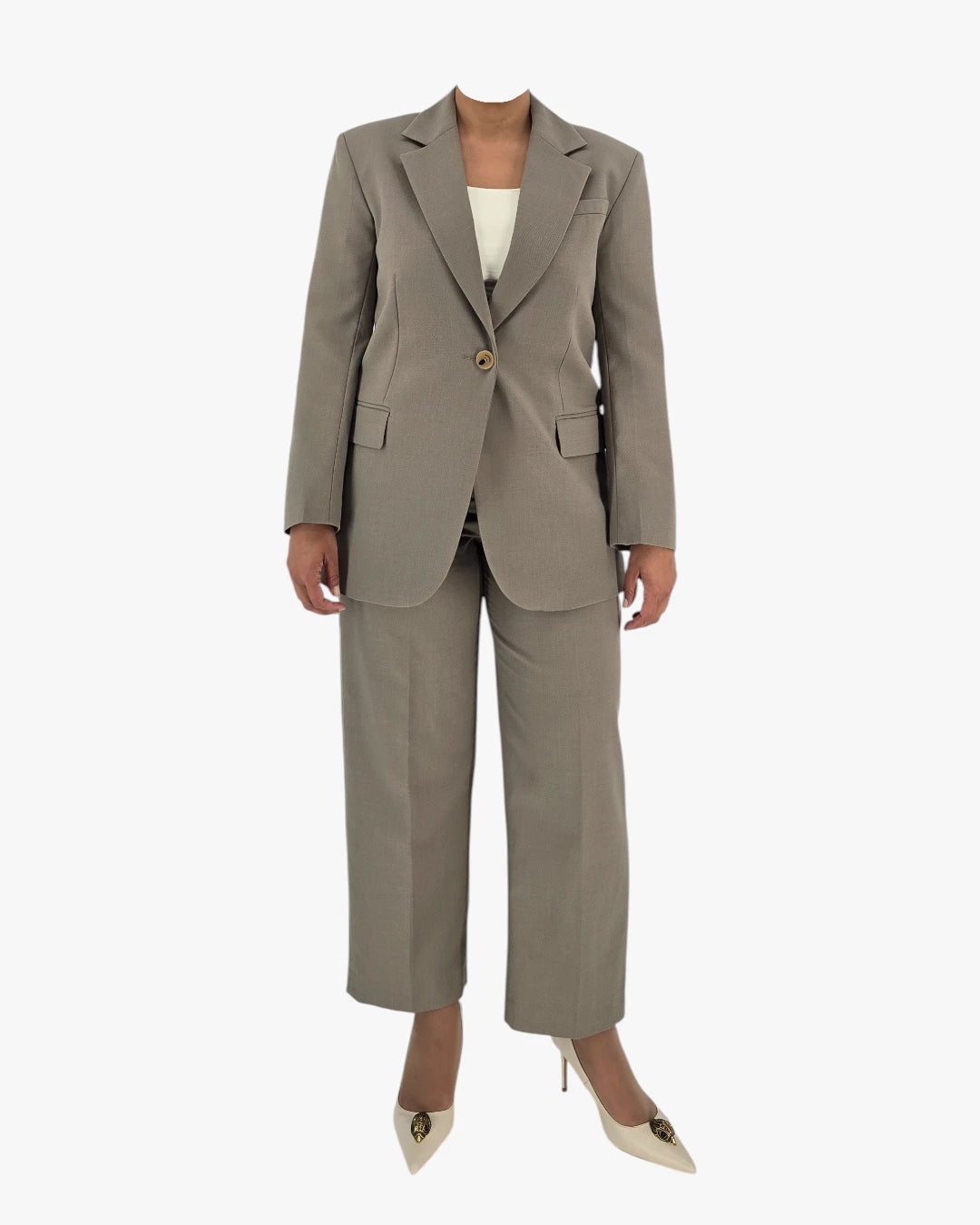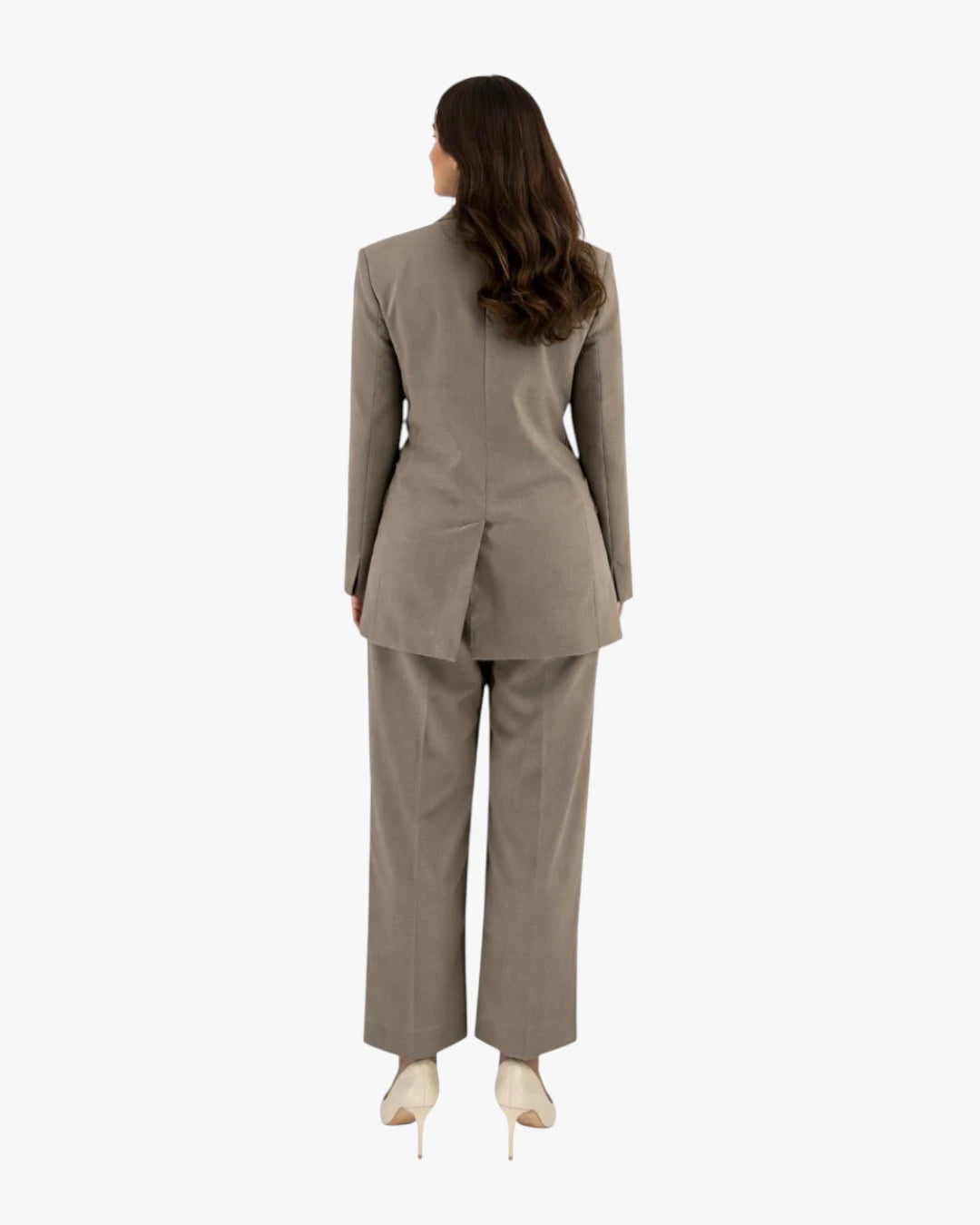 A refined, minimalist suit in a soft neutral tone that balances structure with ease. Designed for confidence, everyday elegance, polished enough for work, effortless enough to style beyond it. A timeless piece from CALIDADÕs wardrobe, meant to be worn, re-worn, and loved.