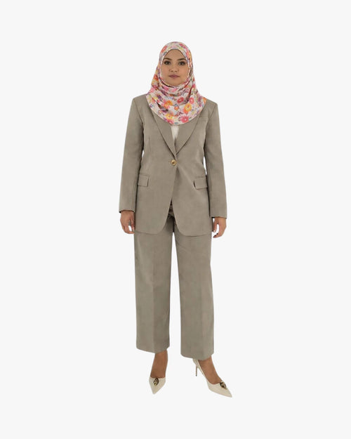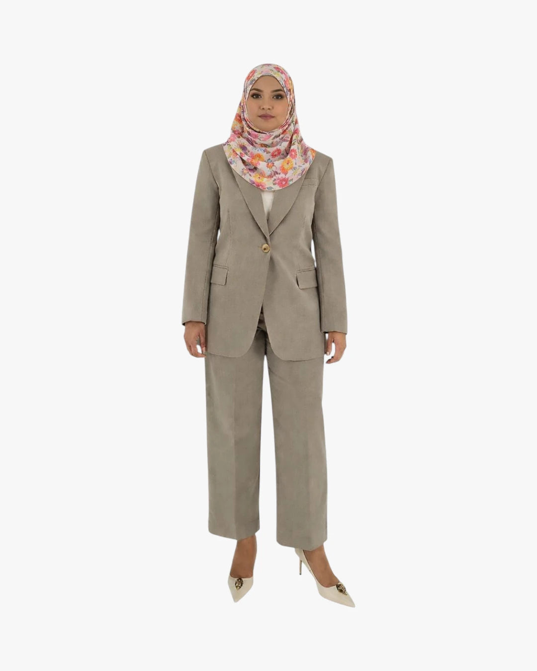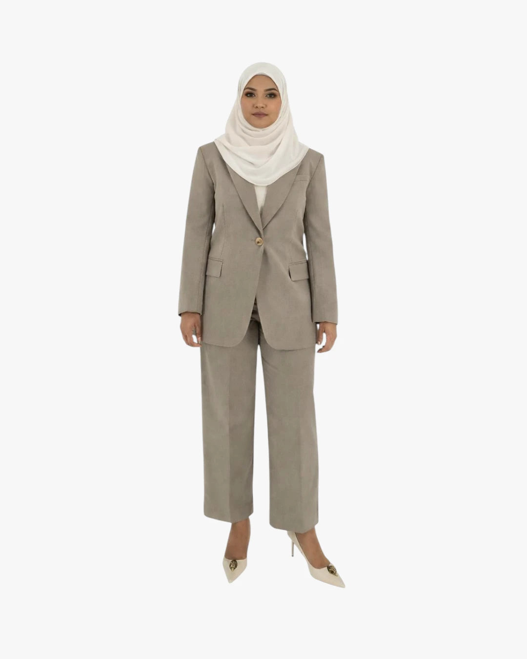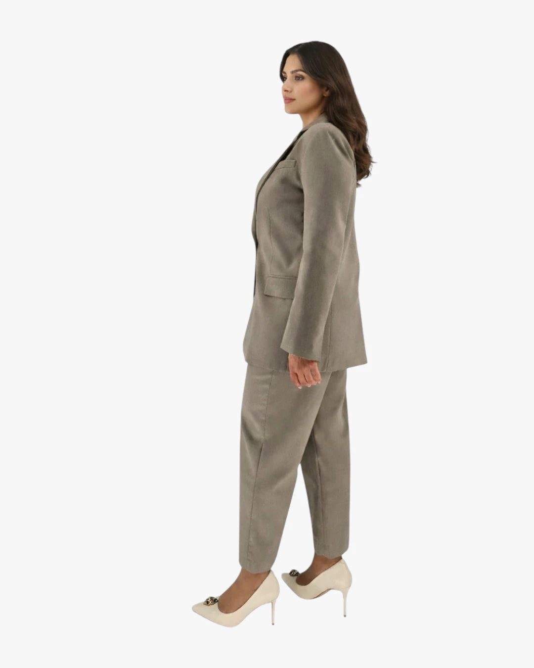 A refined, minimalist suit in a soft neutral tone that balances structure with ease. Designed for confidence, everyday elegance, polished enough for work, effortless enough to style beyond it. A timeless piece from CALIDADÕs wardrobe, meant to be worn, re-worn, and loved.