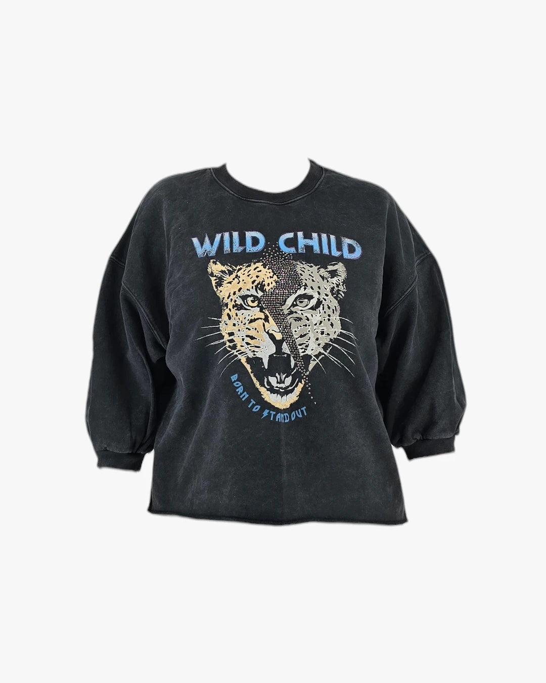 Soft black sweatshirt featuring a striking ÒWild ChildÓ graphic print and relaxed fit, perfect for casual days and effortless styling. Fits medium size.