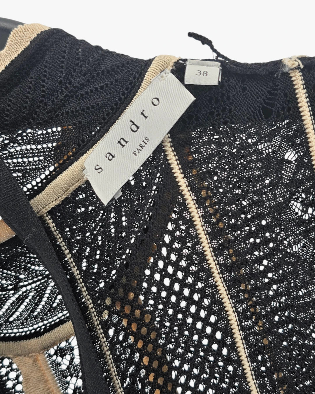 Long sleeves, fine knit fabric, contrast vertical detailing, maxi length. Fits medium size.