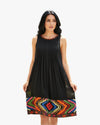 A vibrant take on classic black, this Sarafia midi dress is defined by soft pleats and a colorful patterned hem that adds personality and movement. Effortless, playful, and elegantÑmade for women who enjoy subtle statements.
