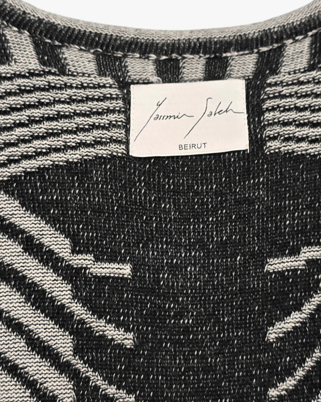 This Yasmin Saleh maxi dress is a true statement piece, blending graphic knit patterns with a sculpting silhouette. Bold yet refined, itÕs designed for women who embrace confidence and individuality with effortless elegance.