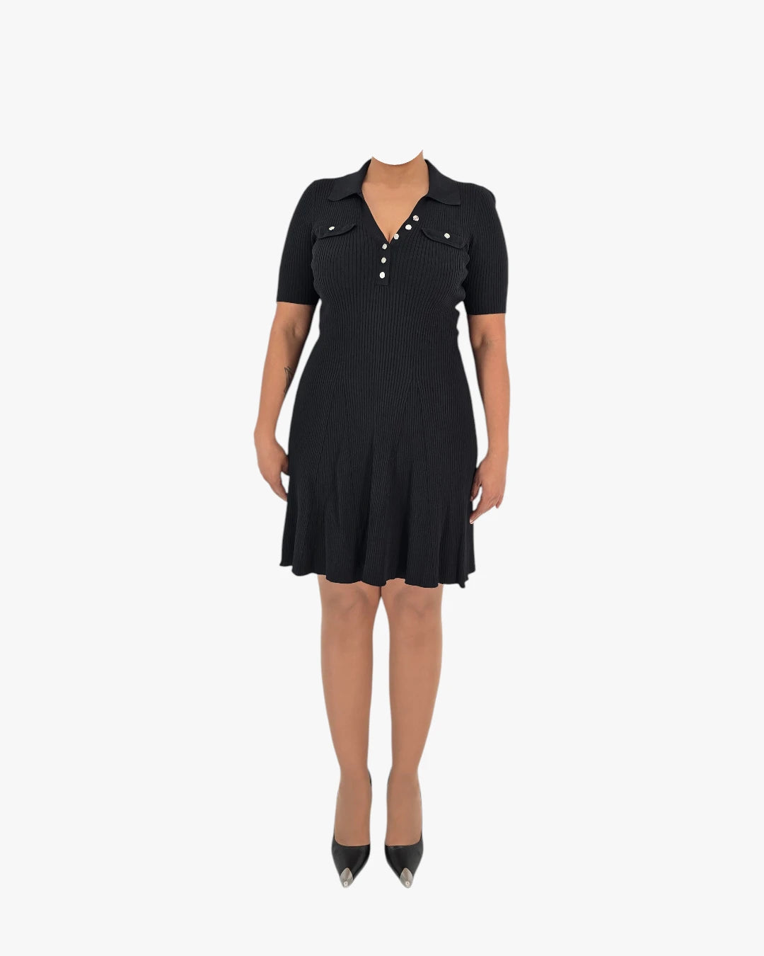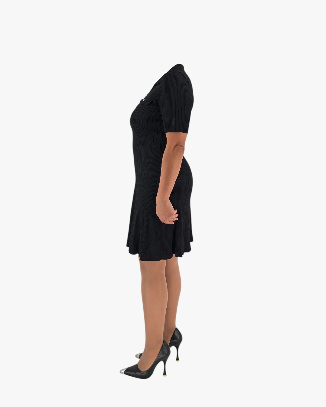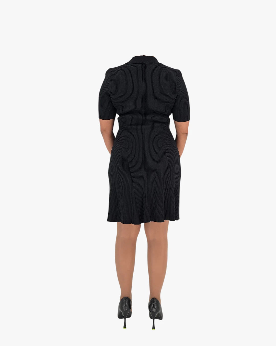 A refined black knit mini dress designed for everyday elegance. Its clean lines and flattering cut make it a versatile wardrobe essentialÑsimple, chic, and endlessly wearable.