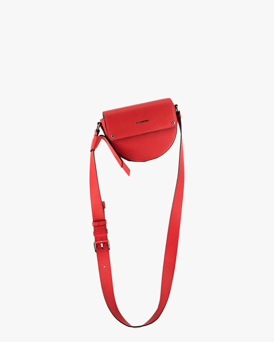 Bold red saddle-style crossbody with a clean, modern design. Compact, vibrant, and perfect for adding a pop of color.