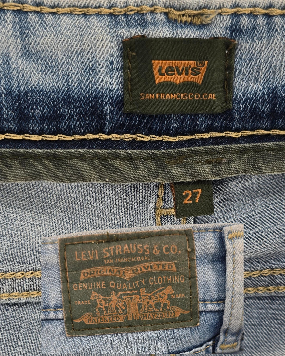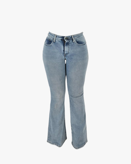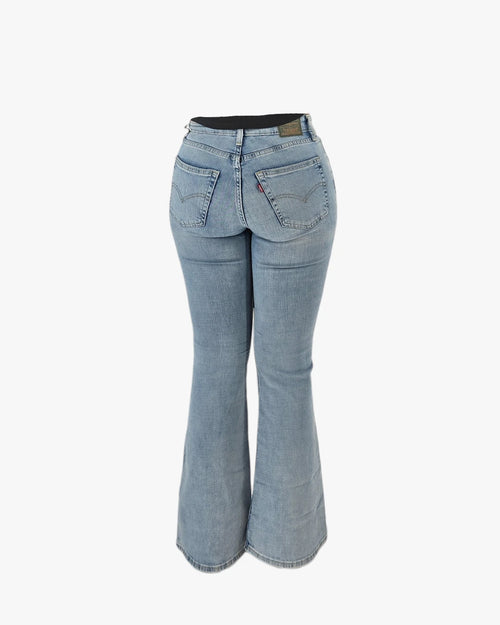 Levi's light blue flared jeans with a subtle vintage touch.