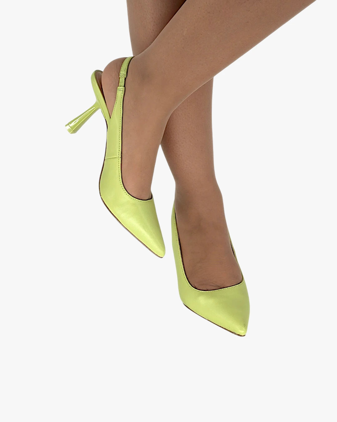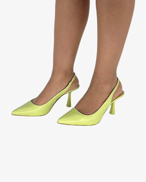 A bold pop of color that instantly lifts your mood and your look. These lime slingback heels are playful yet refined, made for the woman who enjoys standing out with confidence while feeling light, elegant, and effortlessly chic from day to night.