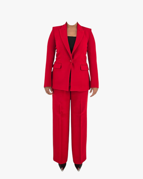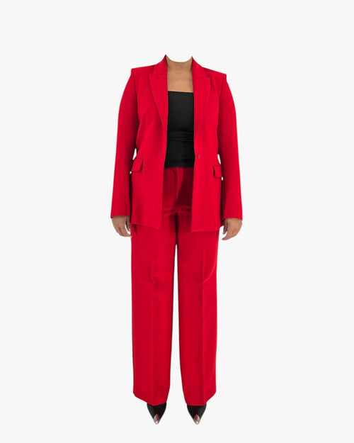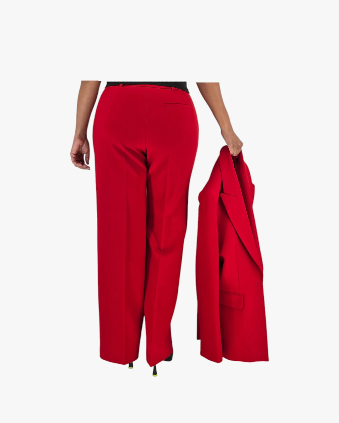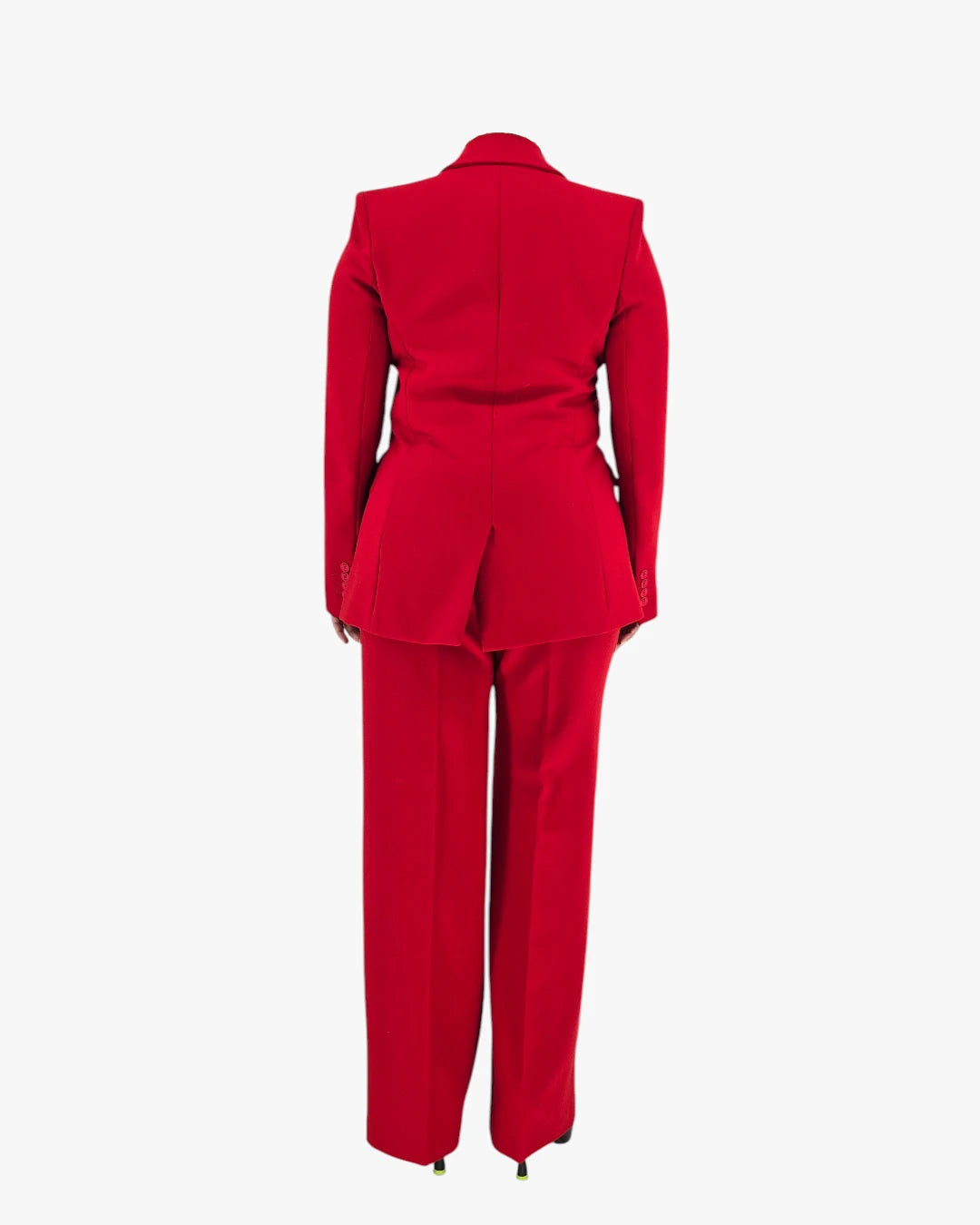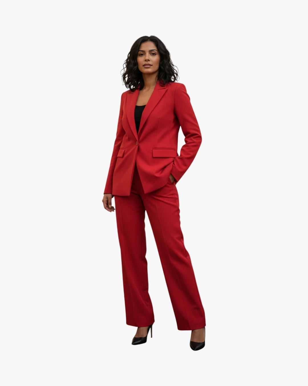 Red has a way of changing how you walk into a space. CALIDAD chose this suit because it carries bold femininity with controlÑnot loud, not aggressive, just undeniably present. You can almost feel the confidence settling in as you button the blazer, as if the suit is reminding you of your own strength.
