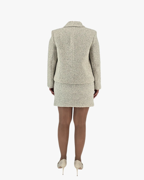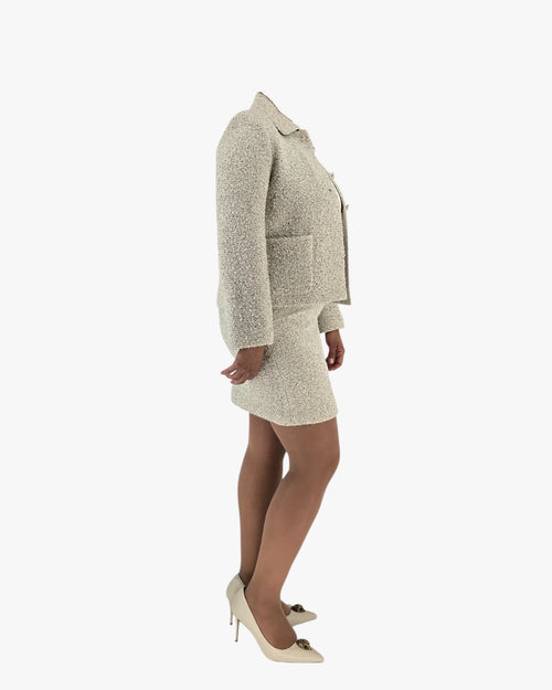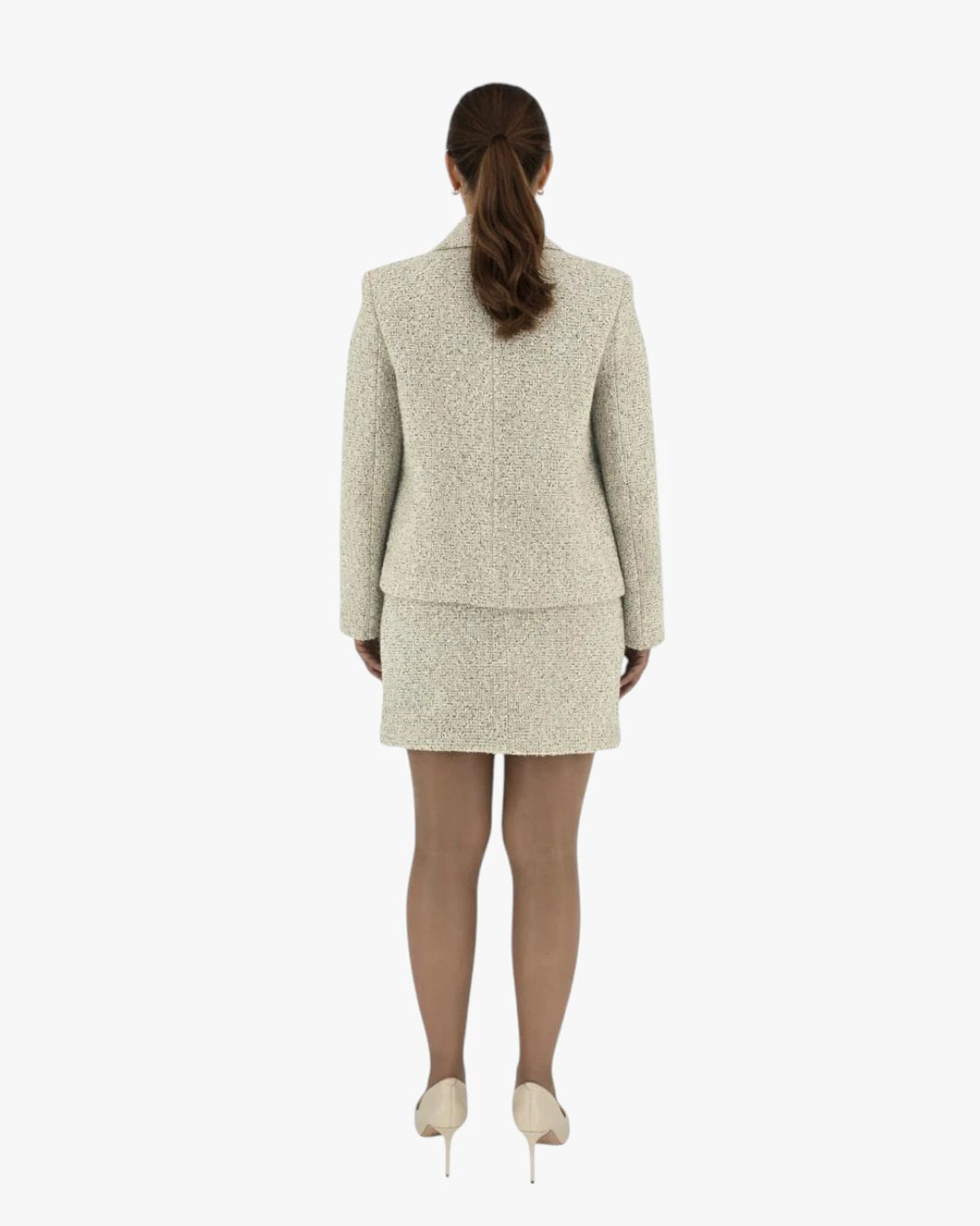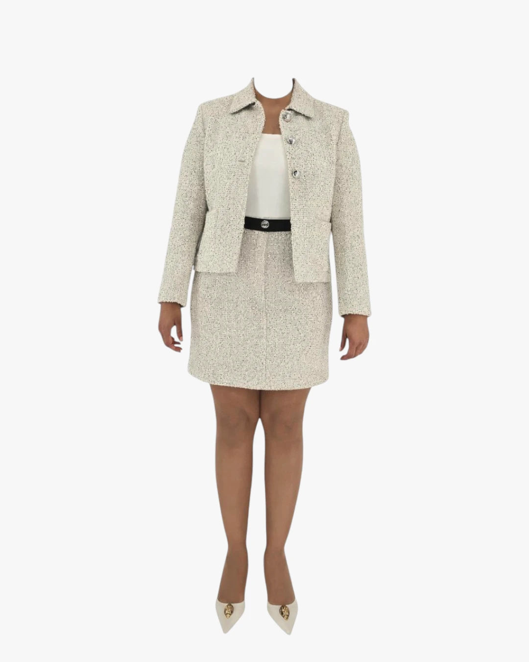 A timeless tweed suit that blends Parisian elegance with modern femininity. Softly structured and beautifully textured, this set offers a polished silhouette with a subtle statementÑperfect for refined daywear or elevated occasions. A classic item with enduring charm.