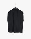 Sleeveless black top featuring fine pleats and a high neckline, creating a graceful silhouette that transitions easily from day to night. Fits medium size.