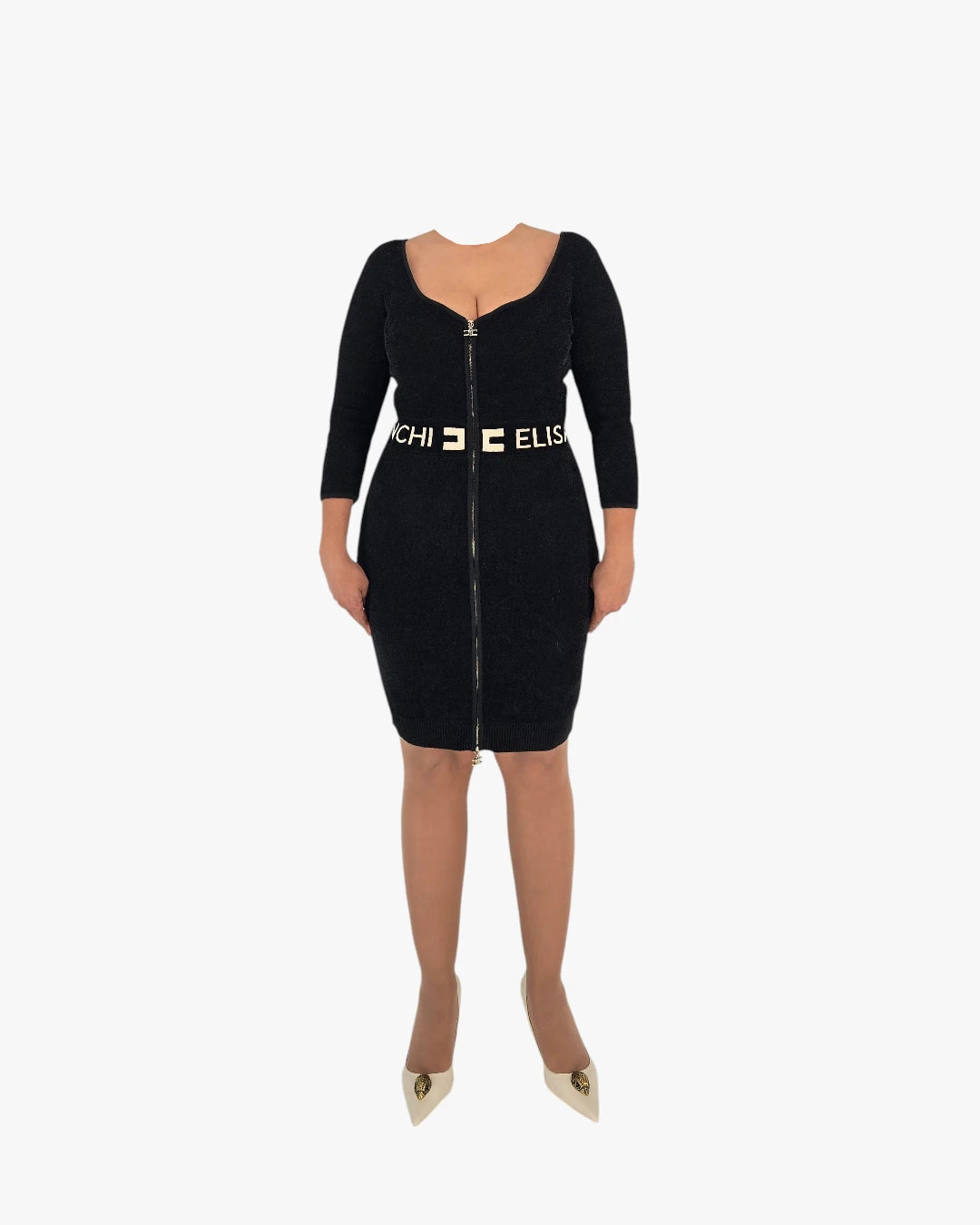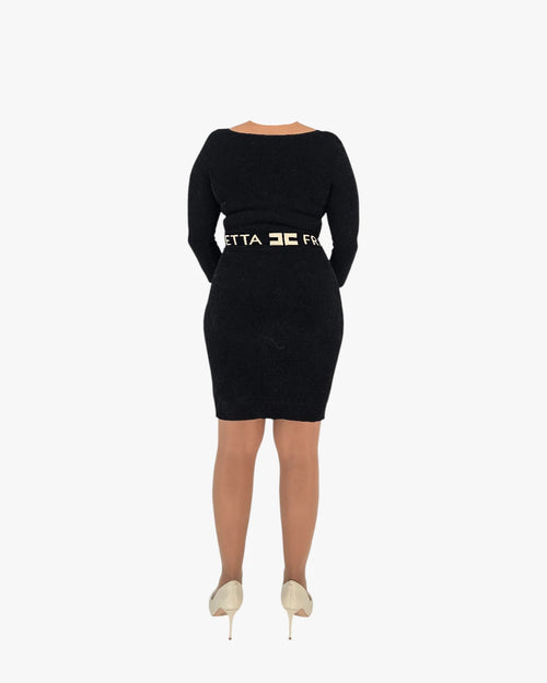 A statement black dress by Elisabetta Franchi, designed to celebrate bold femininity with unmistakable elegance. This piece blends sensual structure with refined craftsmanship, creating a silhouette that feels confident, powerful, and unmistakably luxurious. ItÕs a dress made for presenceÑthe kind that doesnÕt ask for attention, it commands it.