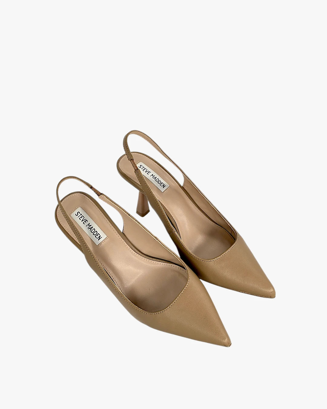 Pointed toe slingback heels, slim heel, neutral nude tone, easy-to-wear design, Size 38