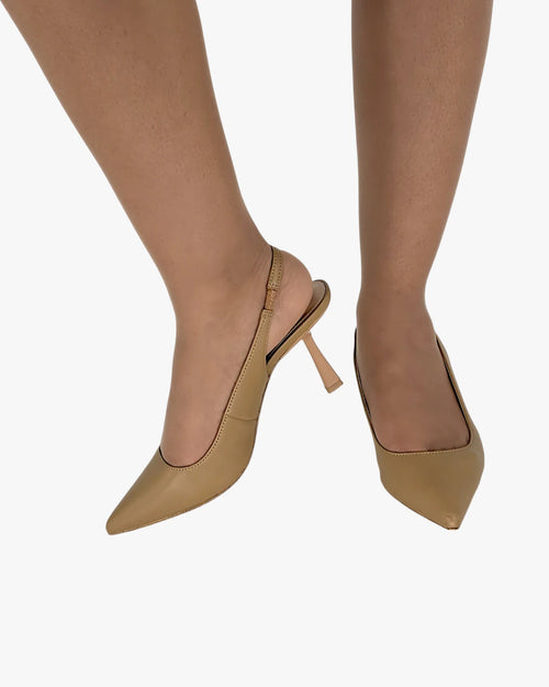 Timeless elegance with a soft touch. These nude slingback heels hug your feet gently, offering a graceful balance between comfort and sophistication, perfect for long days that turn into beautiful evenings.
