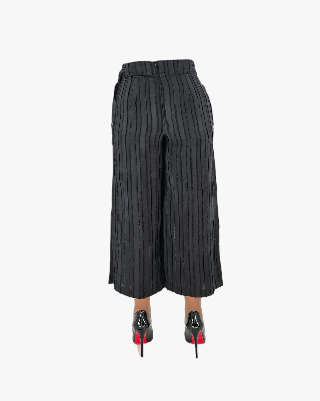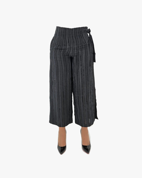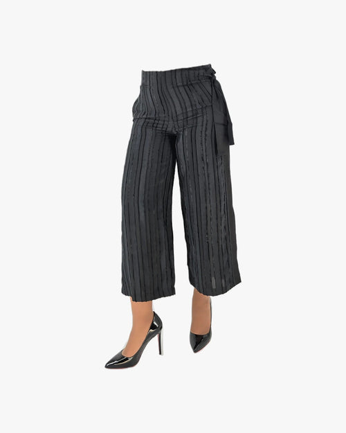 Striped Cropped Wide-Leg Trousers