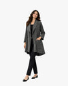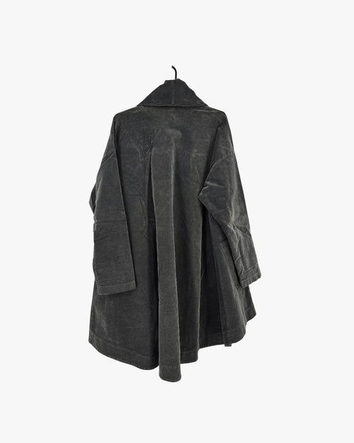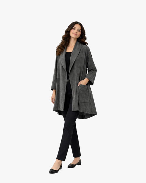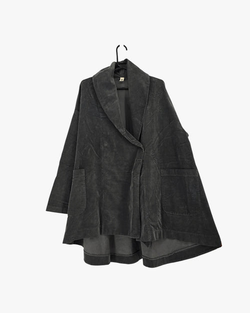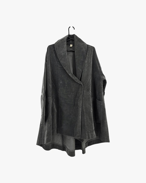 A fluid jacket with an artistic drape and contemporary edge. Perfect for layered, modern styling. Fits sizes Medium & Large.